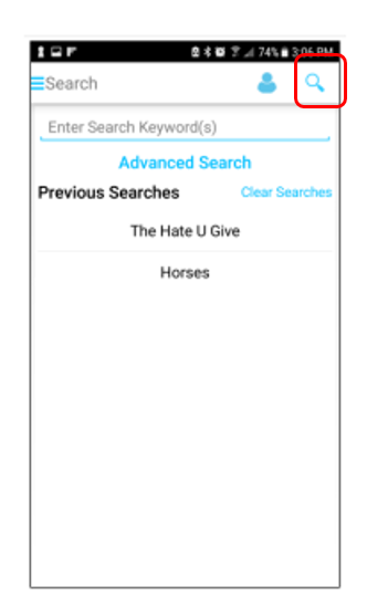 To explore the new functionality within the app, tap on the magnifying glass icon to search by keyword. You can also easily see previous searches.