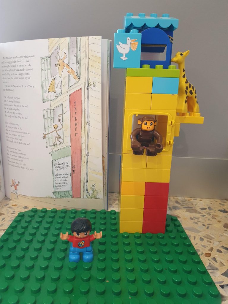 Amelia created a beautiful scene from the book The Giraffe and the Pelly and Me by Roald Dahl with Duplo. This book was chosen as a Click and Collect title from Augusta Library and is a new favourite read at Amelia’s house.