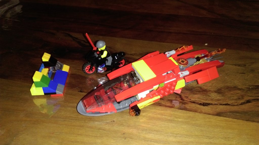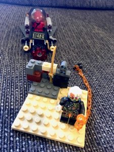Arturo is also a Ninjago series fan and has created an action packed scene. Arturo says his first photo is ” the bad guy on motorbike and the second photo is the bad guy has been captured and locked in Kai’s vehicle”.