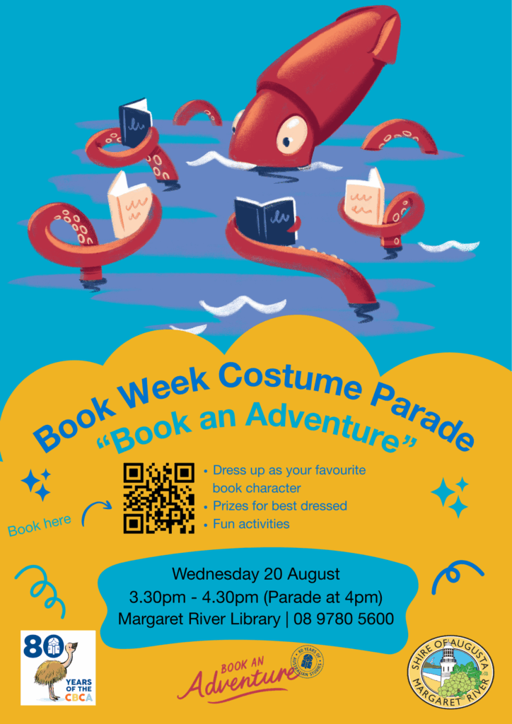 Join us at the Margaret River Library to celebrate 80 years of Children’s Book Week with a fun-filled costume parade, craft activities and prizes for best dressed thanks to @Margaret River Bookshop!